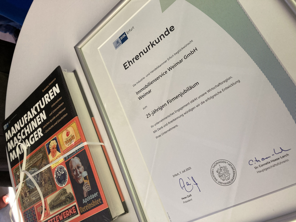 Immobilienservice Weimar GmbH erhält Ehrenurkunde zum 25-jährigen Firmenjubiläum