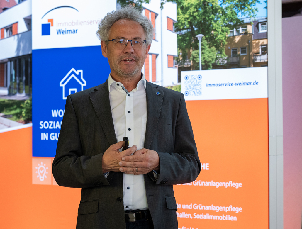Über die Jahre hat sich der Immobilienservice Weimar den Anforderungen der Weimarer Wohnstätte angepasst. Durch die sukzessive Übernahme der Schulen und Sporthallen von der Stadt Weimar, musste sich zum Beispiel auch das Dienstleistungsspektrum und die Belegschaft erweitern. Darüber hinaus gibt es immer neue gesetzliche Vorgaben, die es umzusetzen gilt, oder auch Bedürfnisse der Mieter, die man als zukunftsorientiertes Unternehmen bedienen muss. Hier wäre der Glasfaserausbau zu nennen oder die Fernauslesung der Heizkostenverteiler. Inzwischen gibt es mehrere verschiedene Servicebereiche, die sich um den Bestand der Weimarer Wohnstätte kümmern. „In Zeiten von Handwerkermangel ist es ein strategischer Vorteil, viele der notwendigen Arbeiten mit einer Tochterfirma abdecken zu können.“, betont Udo Carstens in seiner Doppelfunktion als Chef beider Unternehmen. Wohlwissend, dass der generelle Trend auch vor dem Immobilienservice nicht Halt macht. Von den „Urgesteinen“ sind zwar heute nur noch wenige für das Unternehmen tätig, aber der Altersdurchschnitt steigt dennoch. Erfreulich ist daher, dass der Immobilienservice Weimar seit 2021 auch selbst in verschiedenen Handwerksberufen erfolgreich ausbildet.