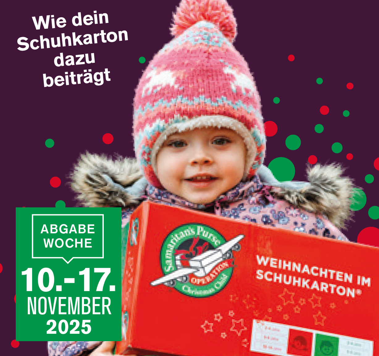 „Weihnachten im Schuhkarton“ ist die bekannteste und größte Geschenkaktion im deutschsprachigen Raum. Der Träger „Samaritan’s Purse“ ist ein zertifiziertes Spendenwerk, das als gemeinnütziger und mildtätiger Verein organisiert ist. Der Satzungszweck fokussiert sich darauf, Menschen zu unterstützen, die auf die Hilfe anderer angewiesen sind.